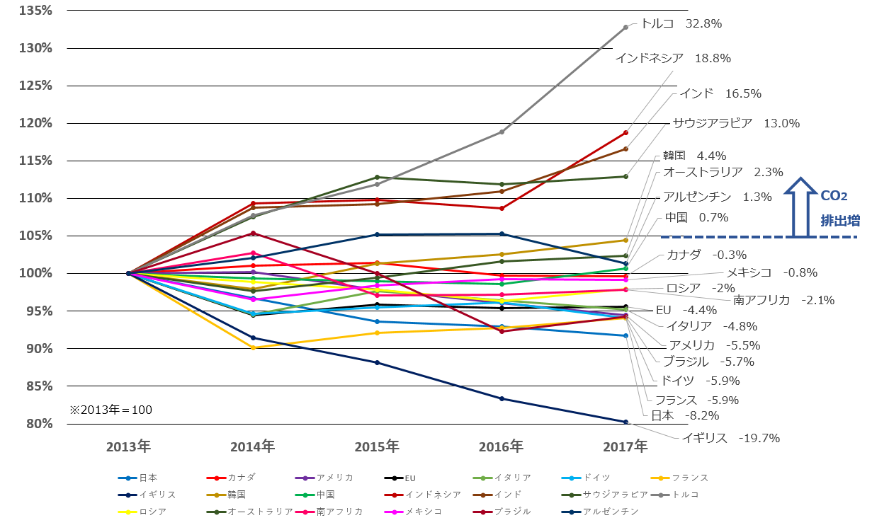 日本は、ドイツや英国ほどの大きな削減目標は掲げていませんが、自国の目標達成の進捗においては現状、世界に誇れる結果を出せています。