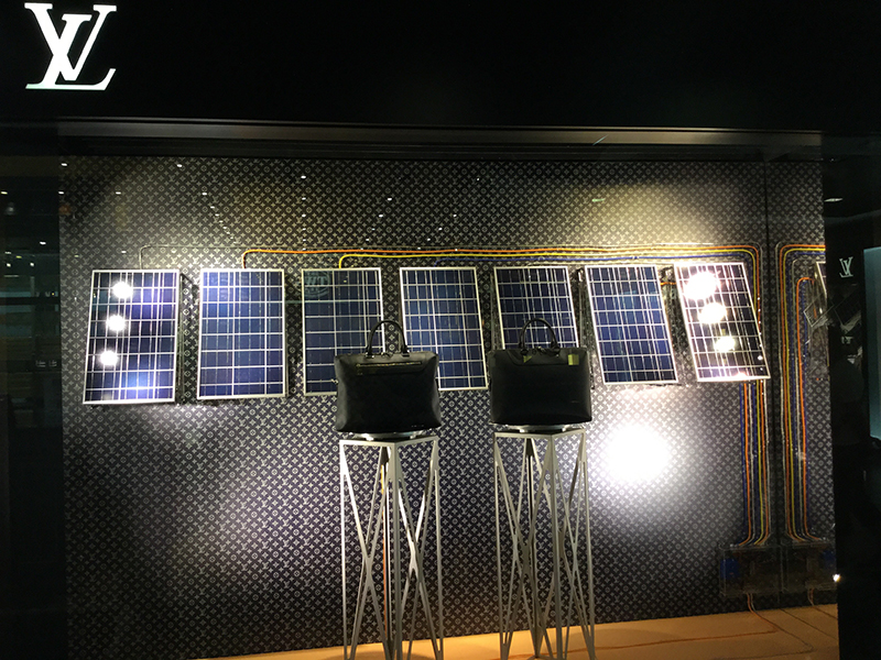 先日、ショッピングセンター内で、小さな太陽光発電パネルを見つけました。