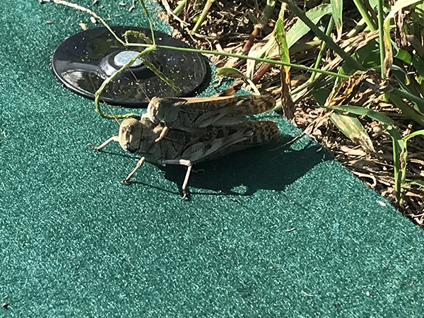 もう一枚珍しいかはよくわかりませんが綺麗に2段になっている親子?のバッタがいました。